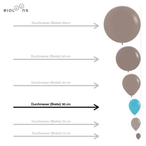 Unser Luftballon in der Farbe Königsblau 041 ist genau richtig – 30cm Durchmesser, die richtig Eindruck machen. Kräftige Farbe, TÜV-zertifiziert und biologisch abbaubar.