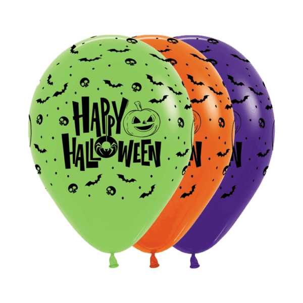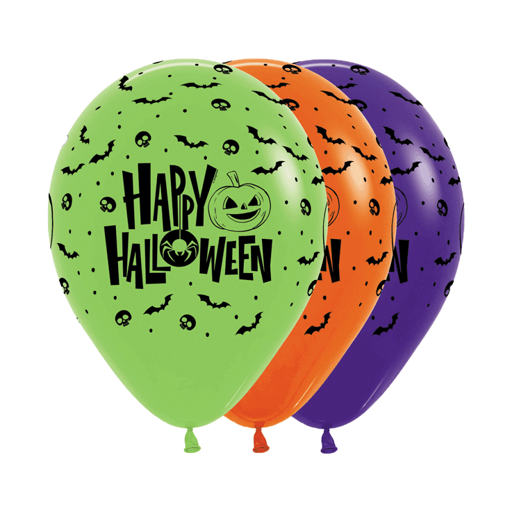 Bioloons® Luftballon 30cm bunt sortiert Fledermaus Happy Halloween – 25 Stück