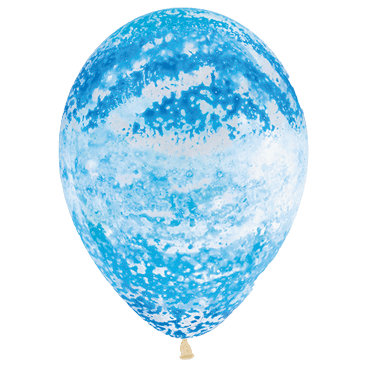 Bio Luftballon 30cm in Kristallklar 390, bedruckt mit hellblauem Graffiti. Jeder Ballon hat ein individuelles Design.